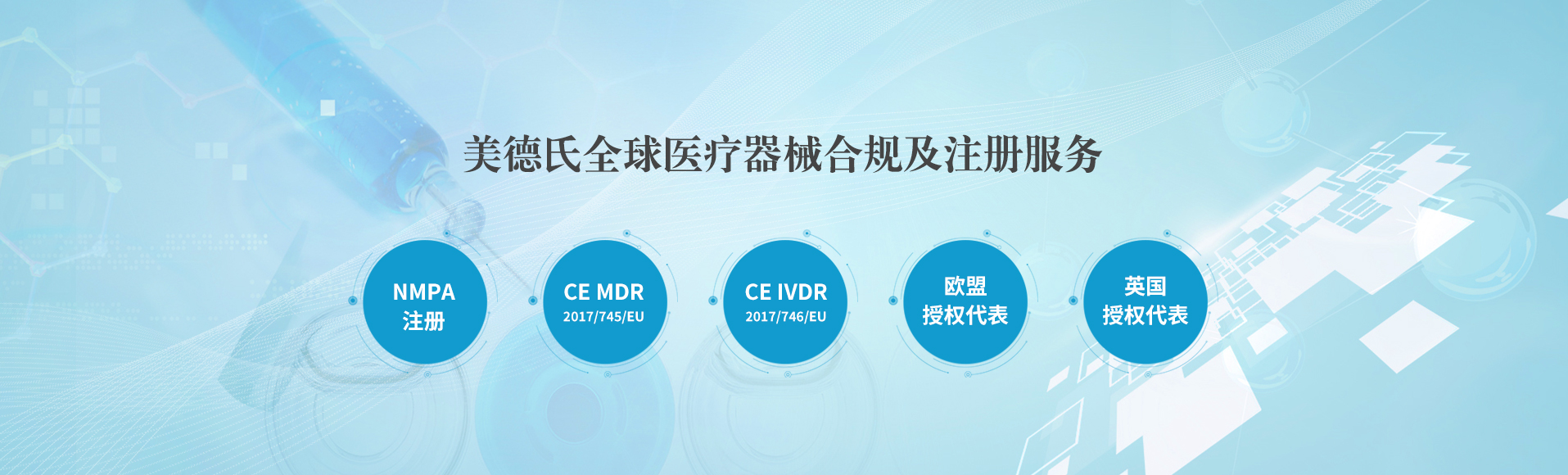 上海美德氏醫療科技有限公司觸及醫療行業熱點需求,提供專業法規解讀,專業,誠信,可靠,真正為您的醫療產品出口的合規環節提供全流程解決方案! 美德氏涉及的服務包括醫療器械歐盟CE認證咨詢(mdr認證;IVDR認證),ISO 13485咨詢;美國FDA注冊(510K;QSR820);歐代美代;國內NMPA注冊咨詢:醫療器械歐...